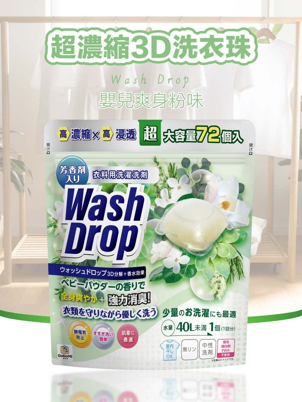 DoDoME 爽身粉味超濃縮3D洗衣珠(72個)
