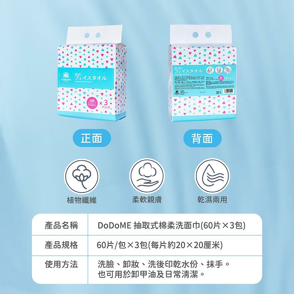 DoDoME 抽取式綿柔洗面巾 (60片x 3包裝)