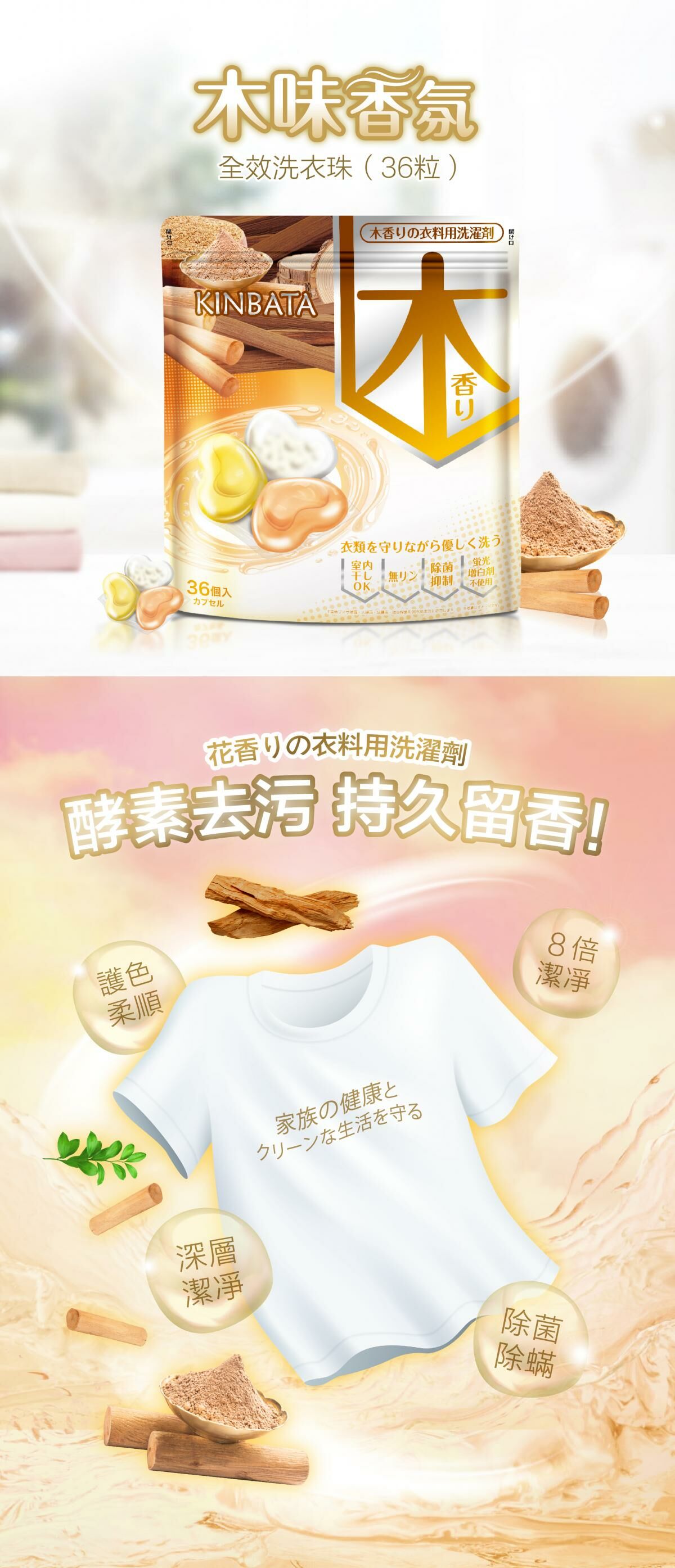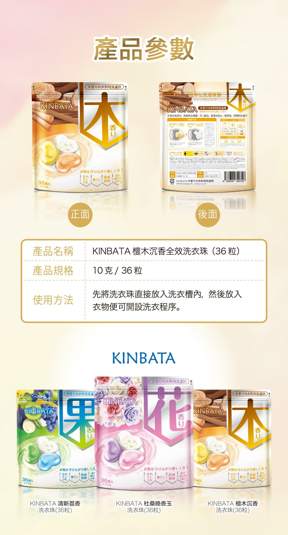 【幼稚園專享】Kinbata 香氛全效洗衣珠-檀木沉香(木香)(36個)