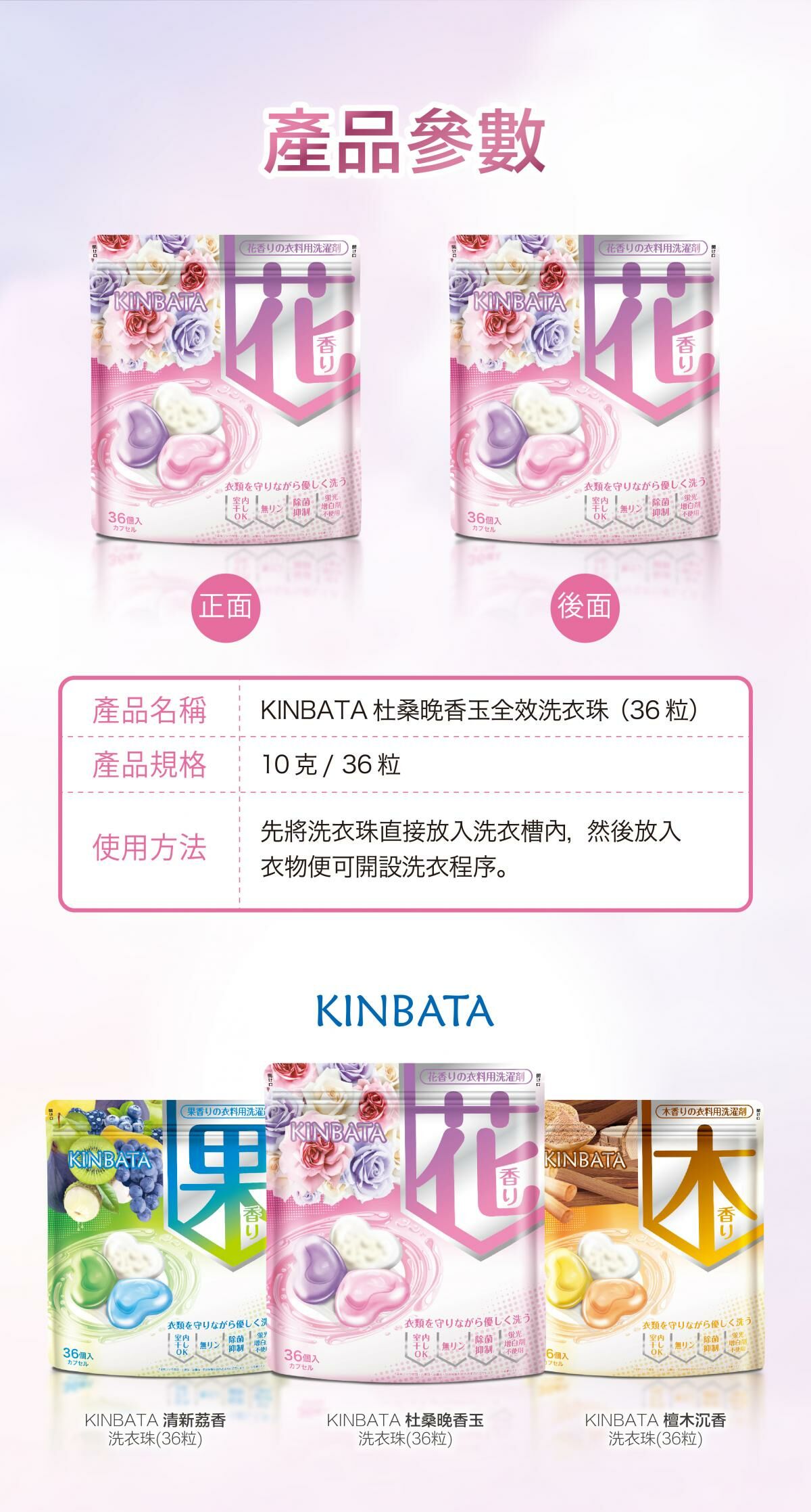 【幼稚園專享】Kinbata 香氛全效洗衣珠-杜桑晚香玉(花香)(36個)