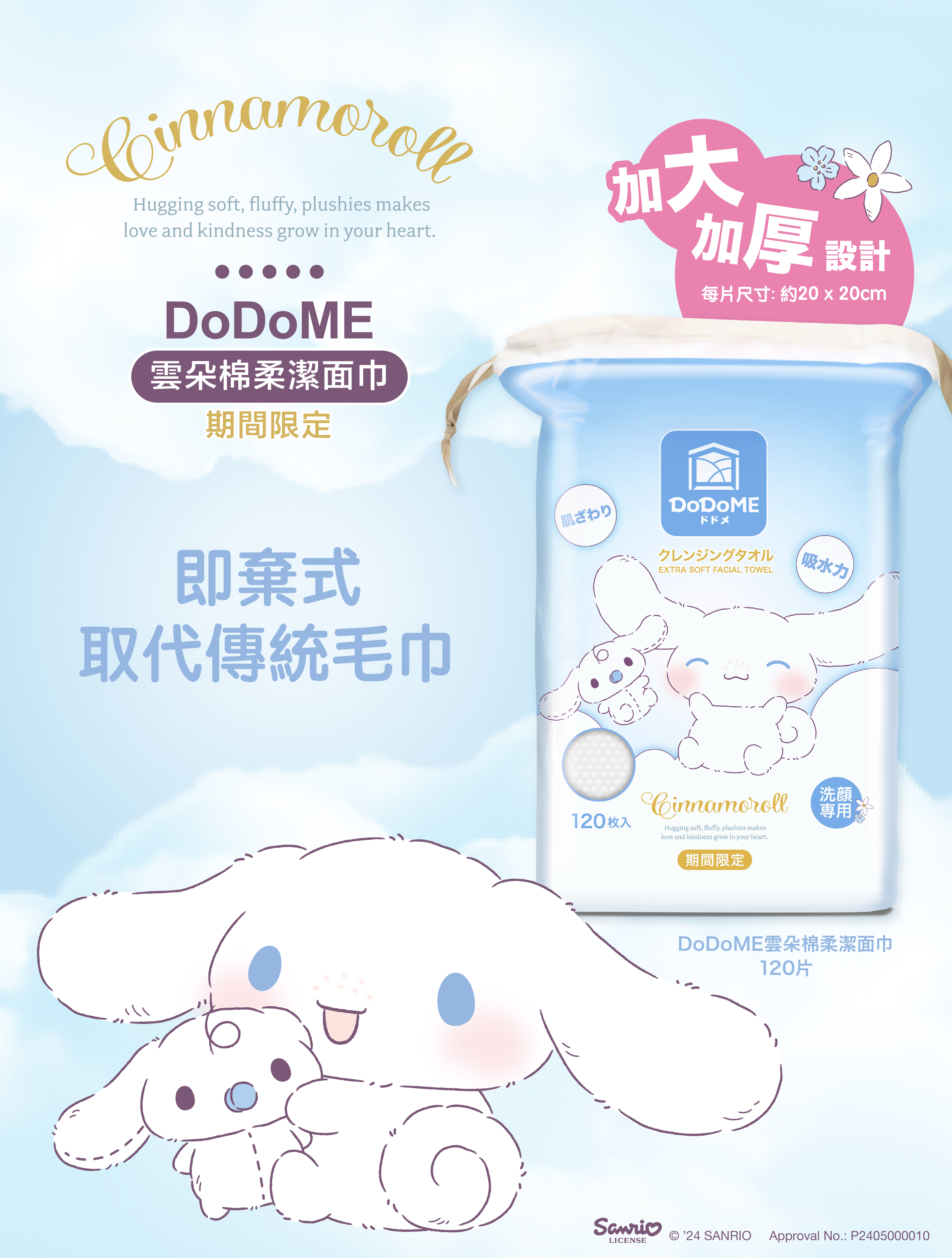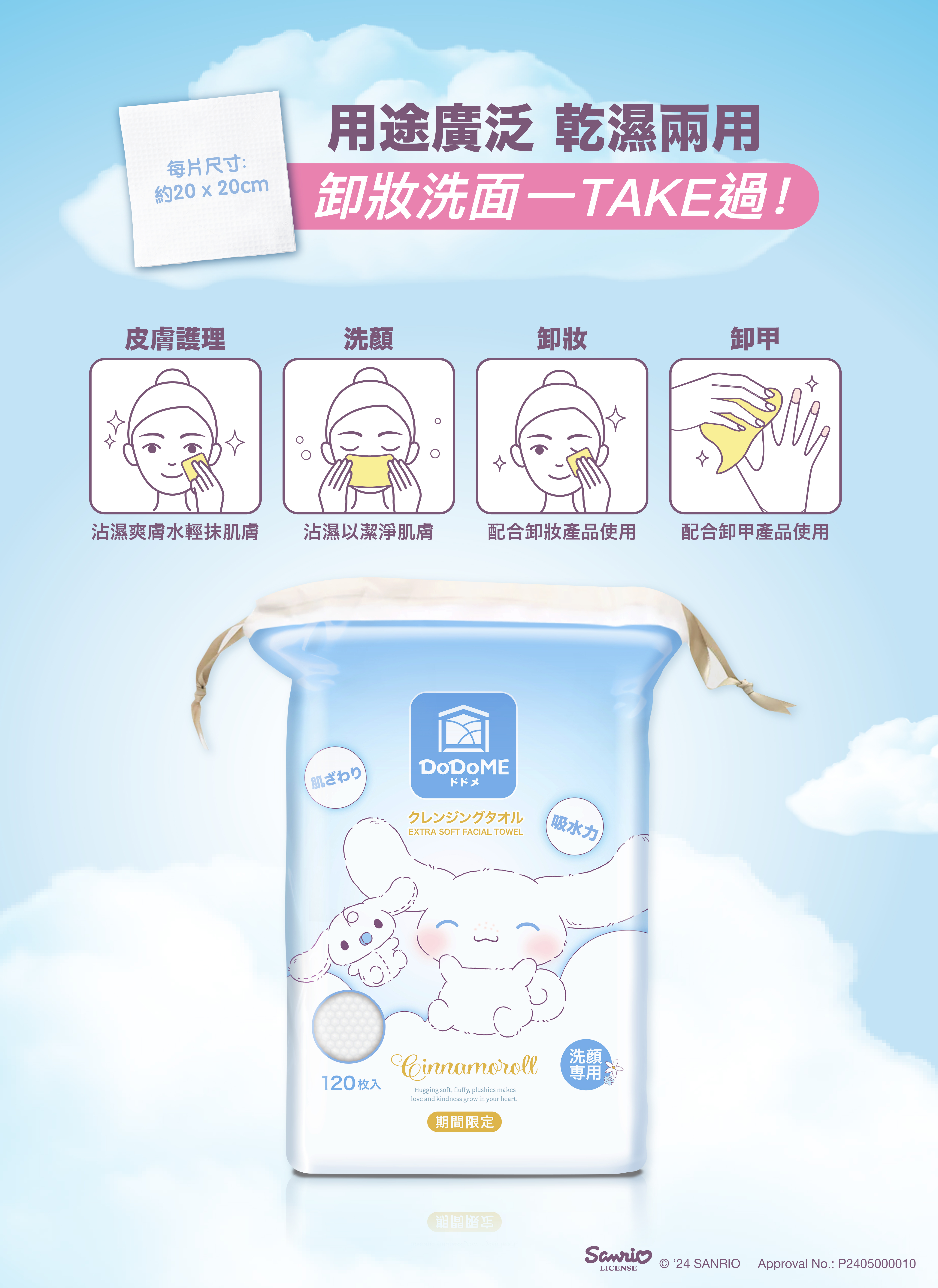 Cinnamoroll X DoDoME雲朵棉柔潔面巾 120枚