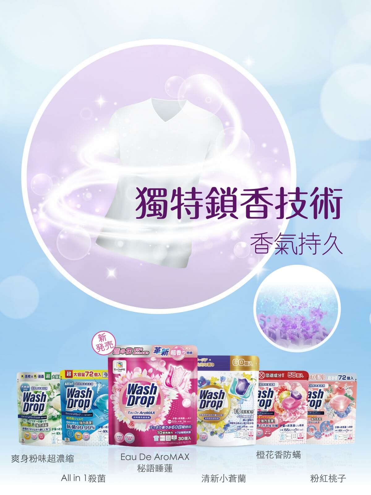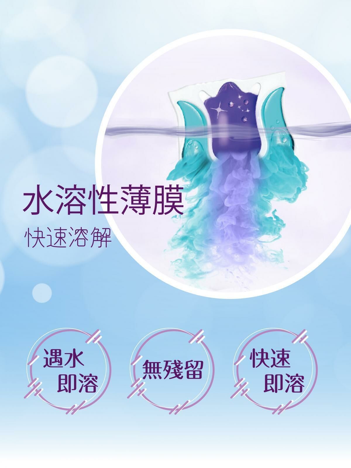 ● 採用水溶膜技術-約2分鐘溶解, 不殘留衣物表面, 不阻塞洗衣機孔