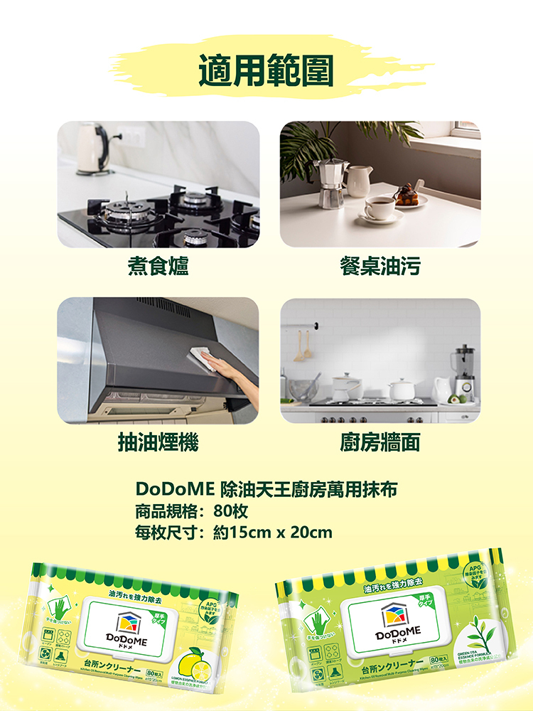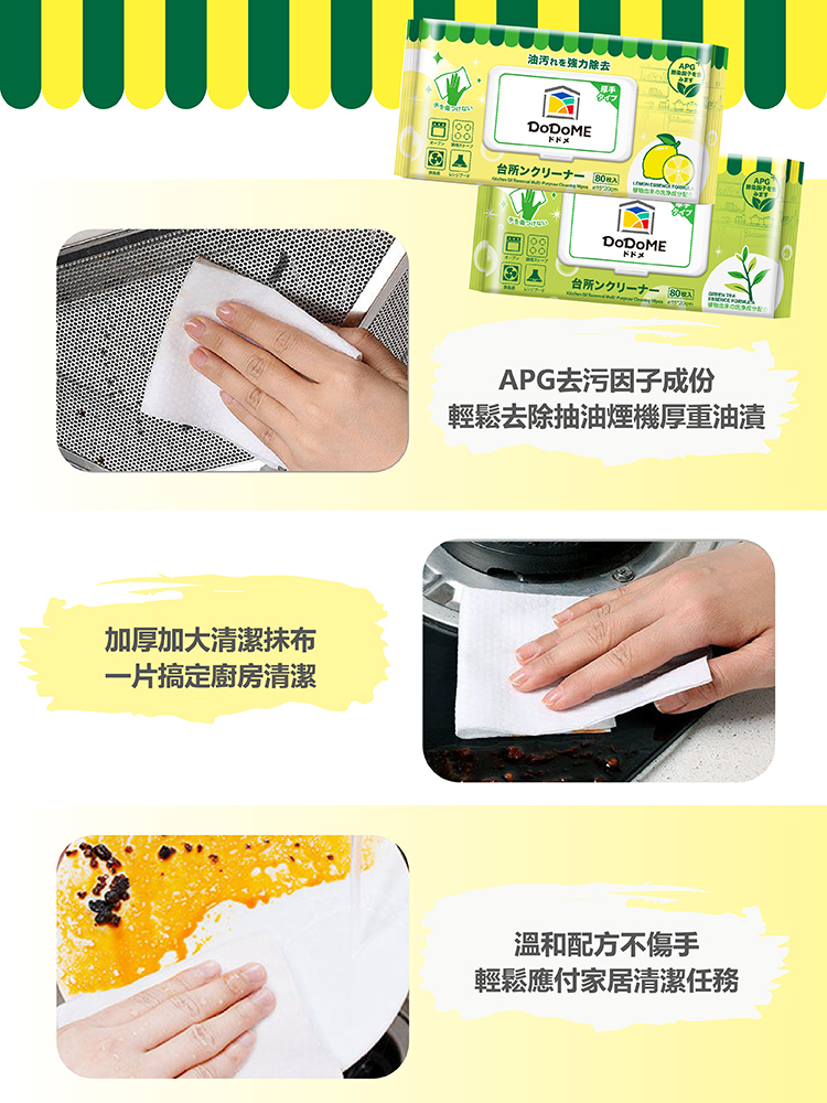 DoDoME 除油天王廚房萬用抹布 (檸檬精華配方) 80枚