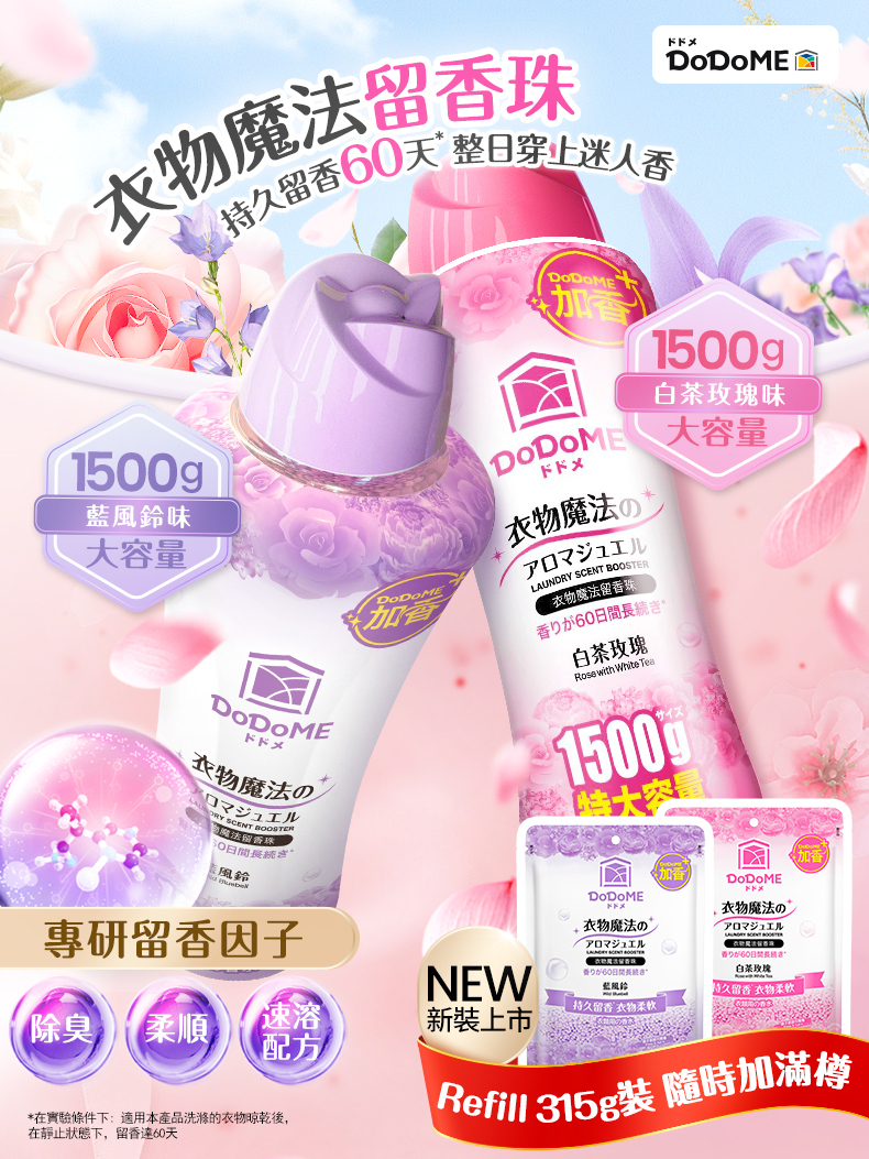 DoDoME 衣物魔法留香珠 1500g (白茶玫瑰) 送 衣物魔法留香珠315g(白茶玫瑰)