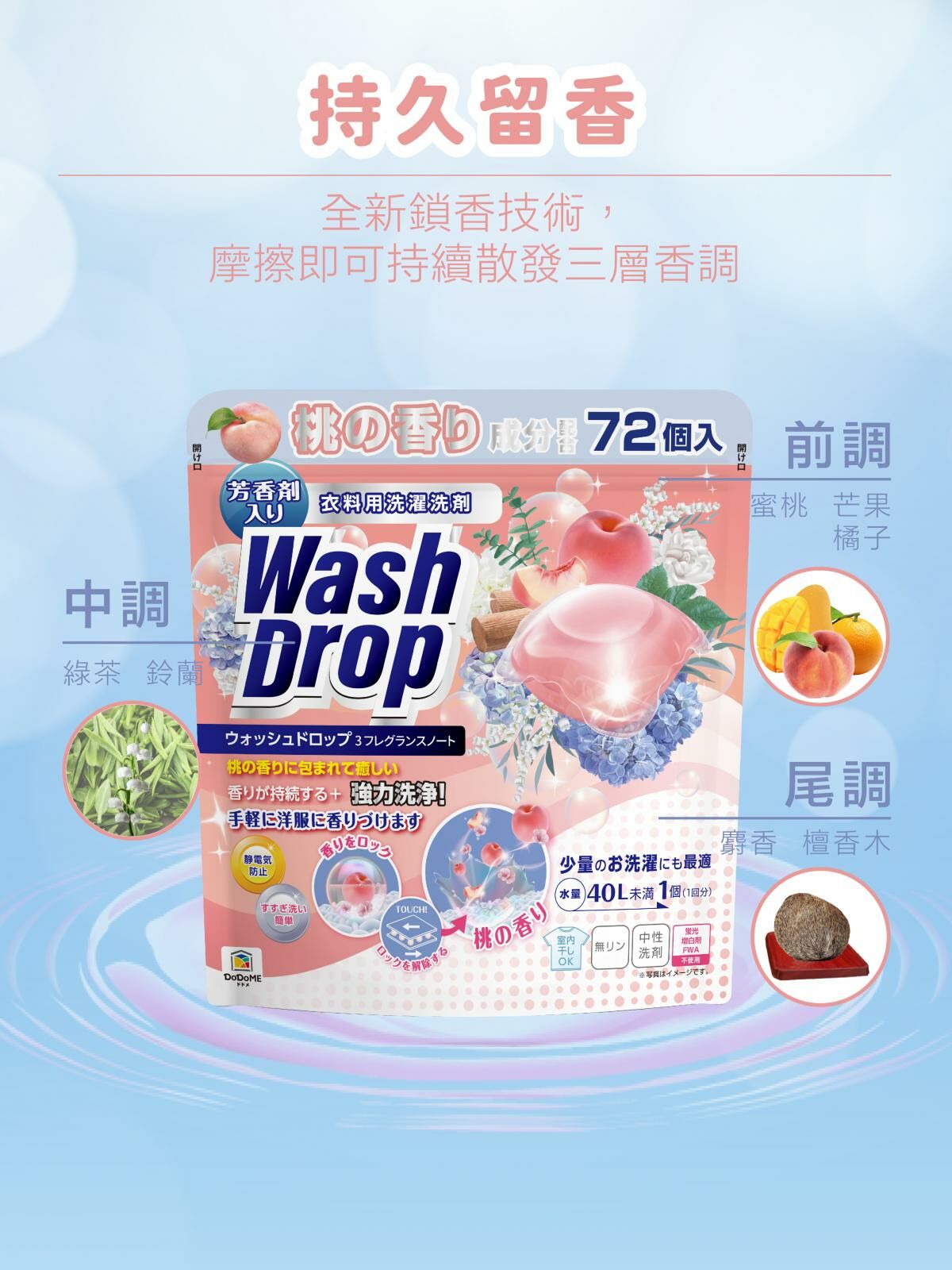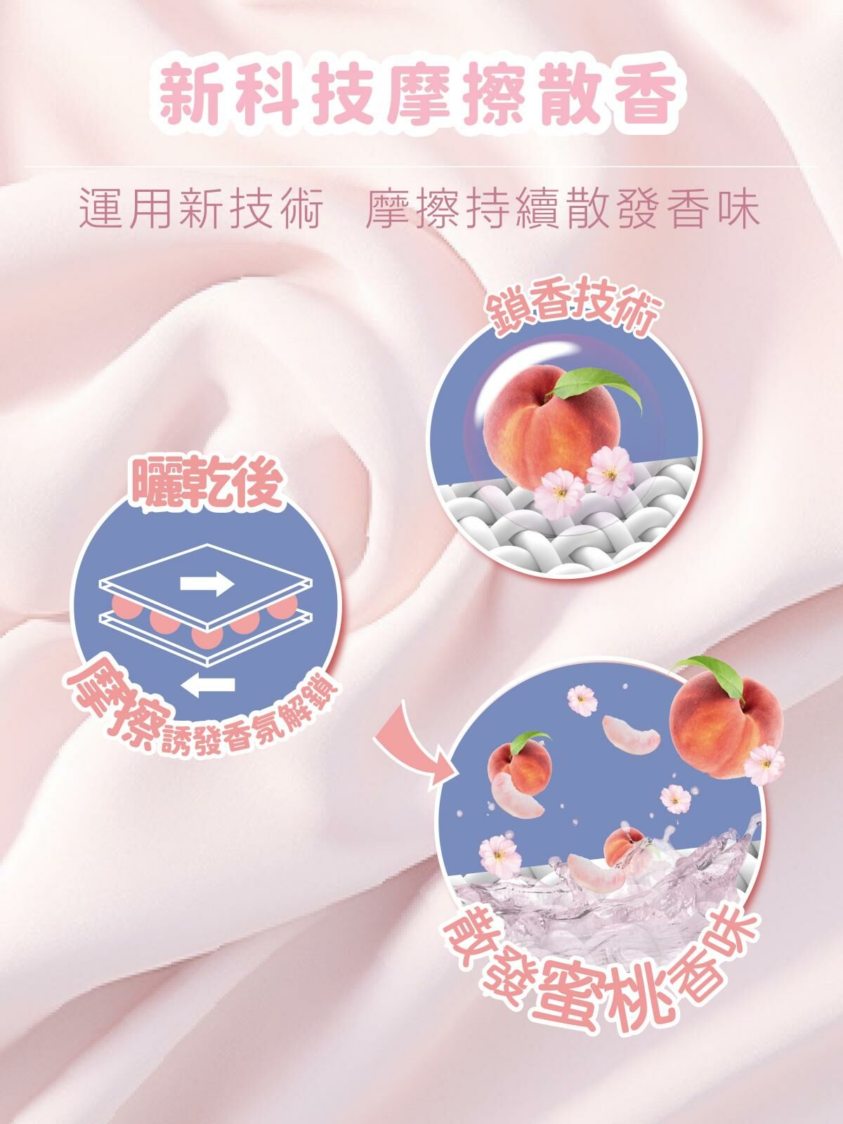 ● 運用鎖香技術,摩擦觸碰會持續散發蜜桃香氣