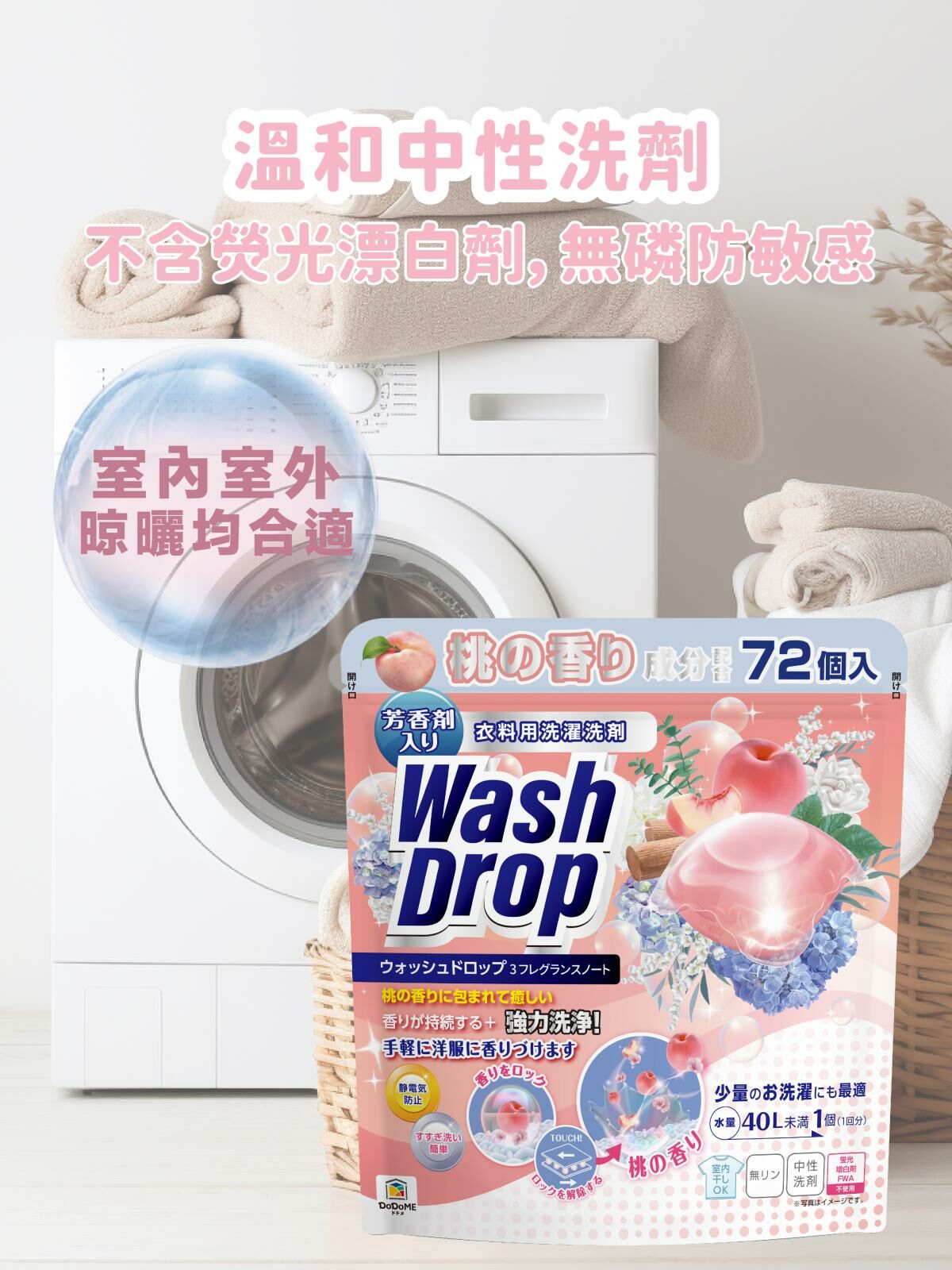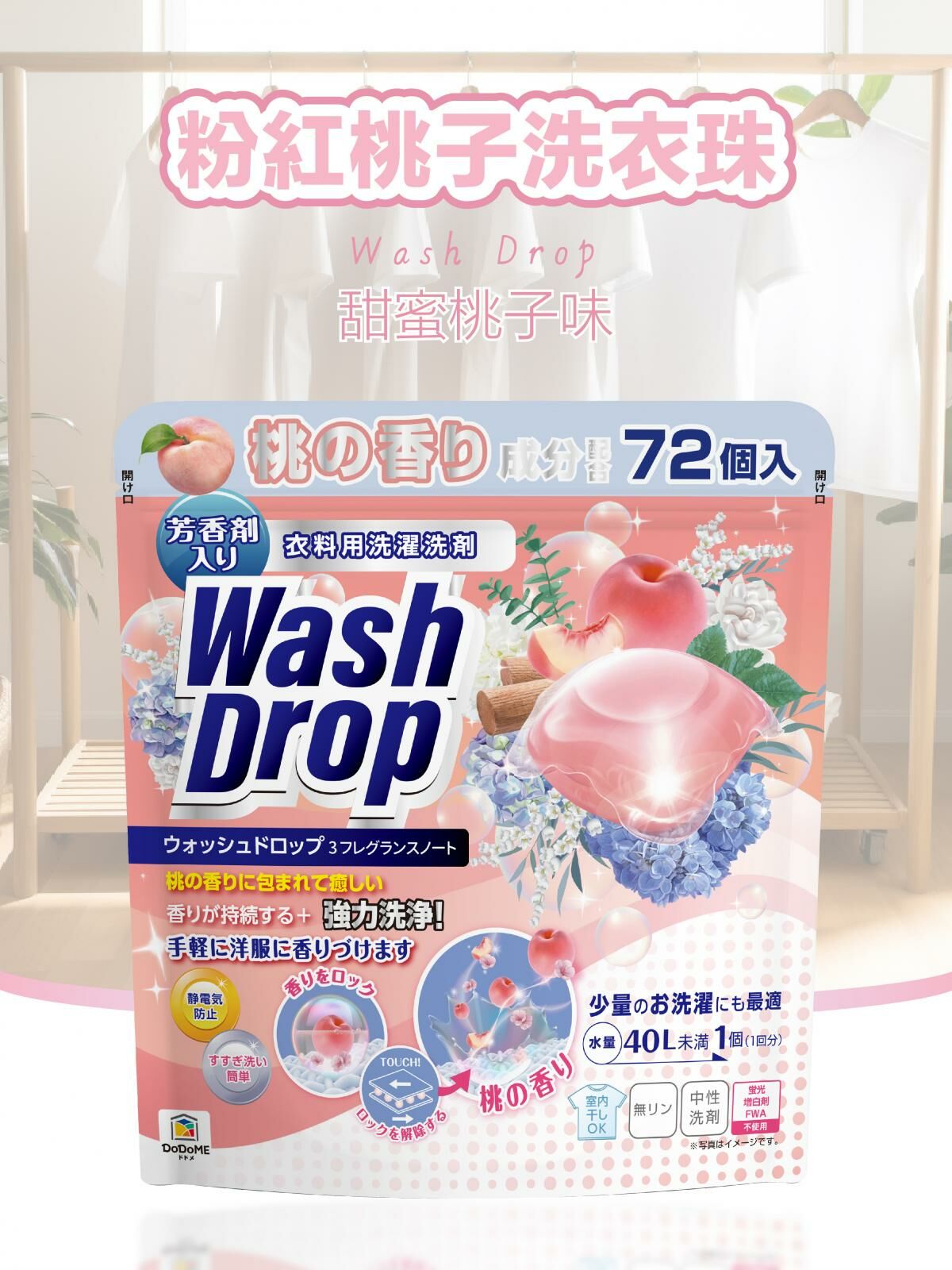 DoDoME 粉紅桃子洗衣珠(72個)